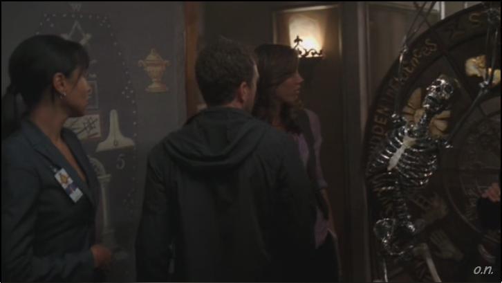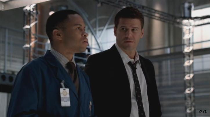 Az elhagyatott banképület valóban hátborzongatóan fest, de a felső szinten tutira nem lesz semmi nyom, a biztonsági őr leviszi nyomozóinkat a páncélteremhez. Az ajtót kinyitni időbe telik, így hőseink feszegethetik kicsit a „miért marad Bones a laborban” témát, ám mielőtt belemelegedhetnének, a szezám végre feltárul. A nő köti az ebet a karóhoz, hogy Zack miatt van minden, közben bemennek a páncélterembe, ami tele van mindenféle tárgyakkal, többek között egy adókészülék is akad, amit Booth elsőre robbanószerkezetnek néz és jól a földre teperi Bonest, hogy megvédje, naná, hogy ezért, a nőt meg az érdekli leginkább, mit segít a becsukott szem, ha felrobbannak. „Csak segít.” – így Booth.