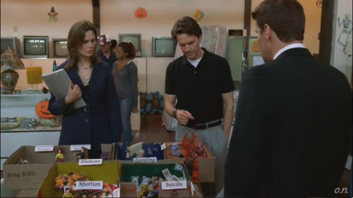Bones és Booth a lelkészségre látogatnak, ahol a lelkész igen segítőkész – bár a ruhákat nem ismeri fel –, és miután Booth biztosítja róla, hogy társa egészen komolyan kérdezi tőle, hogy mi lesz az abortusztól megmentett gyerekekkel, ha felnőve a bűn útjára lépnek, még korrekt választ is tud adni. Egyébként meg, náluk is Halloween-party lesz, még ha igen sajátos módon is, de mindent a fiatalok jó útra térítéséért.