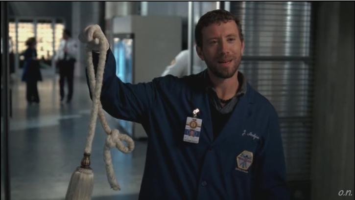Booth beszámol Felicia akciójáról Hodginsnak, aki roppant jól szórakozik a történteken, de abban igaza van, hogy Booth jobban teszi, ha még Felicia előtt szól Camnek… még akkor is, ha ez rosszabb, mint amikor együtt voltak, haha. Azonban előtte még kihallgatja Reardont, aki tartja magát ahhoz, hogy nem ölt meg senkit, és kötélnyomok sincsenek az alkarján. Hodgins felteszi, hogy a réz szilánk, amit Kristen bordájában találtak, talán egy bronz tárgyból származik, mivel a réz a bronz egyik összetevője. Cam szerint is jó az ötlet, bár az is átgondolandó, hogy esetleg valóban a bogaras tudós lehet a Gormogon. Az Intézetben annyi a bronz fegyver, mint égen a csillag (de egy sincs közülük a trezorban), évekbe telne letesztelni az összest.
