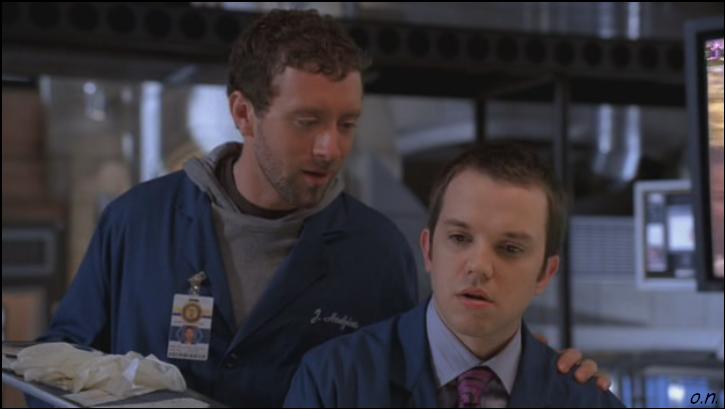 A laborban is nosztalgikus a hangulat, jóhogy, a kis csapat tagjai 20 éves videofelvételt néznek épp a tartály lezárásáról. Évkönyv, magnó, 4x4x4-es Rubik-kocka, CD kerül bele, hulla nem. Zack a csontokon elég sok különböző időből származó begyógyult törés nyomát látja; a jobb kulcscsont sérülése viszont friss – állapítja meg Brennan. Angela már rajzolt is egy arcot, ami alapján Cam az évkönyvben, Zack pedig a videón szúrja ki rögtön az áldozatot: Roger Dillon. Flaneling, szemüveg, vicces haj: a srác tipikus kocka. Volt.