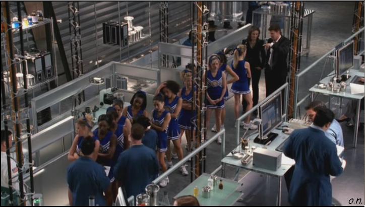 Justin Berry nem épp egy dögös pompomlány, sőt leginkább ezek ellentéte, stílusa van és ezzel máris szimpatikussá vált a szememben. Viszont tisztában van vele, hogy trippere van, épp az áldozattól kapta, és bosszúból adta tovább a csapattársának, amikor R.J. nem állt már szóba vele. Bár van kulcsa a lelátóhoz, tagadja a gyilkosságot, még DS-mintát is ad, igaz elég sajátos módon. Bones pedig már teljes mértékben meg van döbbenve azon, milyen alakok járnak az egyetemre. A minta a várakozásoknak megfelelően nem egyezik. Angela kiköti, hogy ő nem akar ezentúl sminkszakértő lenni, de a kék rúzsról már tudja, hogy egy promóciós anyag hajrácsapatoknak, a színárnyalatot az egyetemi kosárcsapat színéhez igazították. Nyálmintát vesznek hát az összes pompomlánytól, hiszen az áldozat barátnője legalább a fél csapatot del tudná sorolni R.J. szexpartnereként. A barátja sokfajta lányt szeretett, ő viszont az állandó fajta volt, és hogy Manning halálát siratja-e vagy az ezzel elvesztett luxusvillát, az jó kérdés.