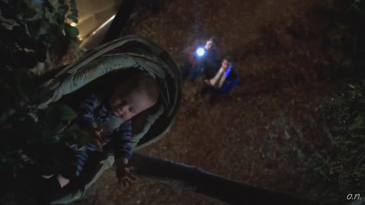Booth létráért kiált, épségben leszedik a gyereket a fáról. Egy karcolás sincs rajta, ami a seriff szerint csoda, Bones szerint viszont teljesen érthető, hiszen a gyereküléseket arra tervezték, hogy megvédjék a kicsiket. A seriff gyorsan lepasszolja a babát és az esedékes pelenkacsere nemes feladatát Bonesékra, és mivel a nő megfogni sem nagyon hajlandó a kicsit, Booth nyeri a projektet. Bones a kellékeket adogatja, ám hintőpor nincs, van helyette viszont egy picike kulcs a pelenkás táska rejtett zsebében. Amíg Booth elmegy hintőport szerezni a mentősöktől, Bones vigyáz a gyerekre, az ugyuli-bugyuli megszólalással kezdve és „az elefántok nem lilák” figyelmeztetéssel folytatva a dolgot, és sikerül addig szerencsétlenkednie, amíg a baba egy óvatlan pillanatban le nem nyeli a kulcsot. Ez pedig azt jelenti, hogy velük marad, hiszen az bizonyíték. Hehe.