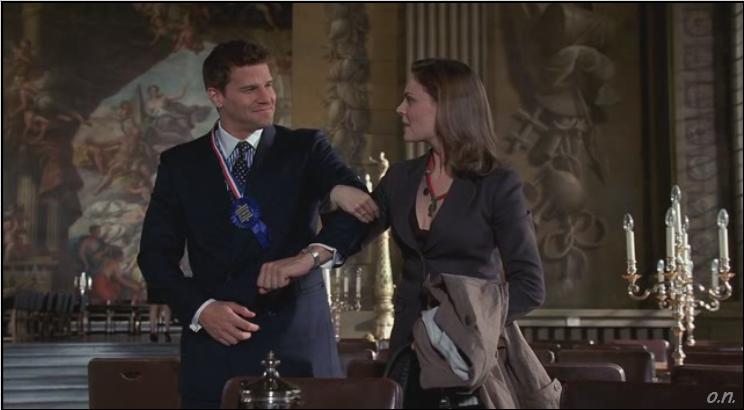 Angela felhívja Brennant, hogy megbeszélje vele a szakítást, de csak az egyedi üzenetrögzítőjét éri el. Grayson bemegy hozzá elköszönni újra, és a történteket hallva még egyszer megkérdezni, hogy nem akar-e visszamenni hozzá. Vagy legalább kivinni a reptérre, mert a válasz egy határozott nem. A fuvart végül Clark intézi, aki egyben el is köszön, ez a hely túl drámai neki. Booth és Bones is búcsúznak Londontól és Kate-től, aki hozott egy játék kitüntetést Booth-nak, és lovaggá is üti őt. Ian olyan volt, mint Robin Hood, Booth pedig lehetne Sir Galahad. Az újdonsült lovag még meghívja Kate-et a gyarmatokra, de mivel a reptéri fuvart már Lady Temperance elintézte, végül vele indul az Újvilágba.