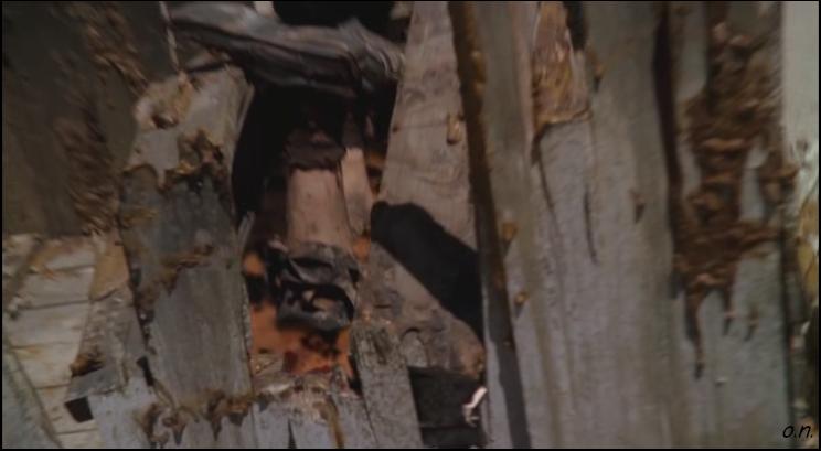 A fertőzésveszély ezidáig nem volt komoly faktor a sorozatban, így nyilván a szag miatt húzott mindenki védőruhát, ami Sweets-nek mindenesetre bejön. Miközben kiselőadást tart a gyilkos pszichés állapotáról, Cam és Brennan találnak egy papírdarabot az áldozat torkába tömködve. Egy fénykép lesz, Cam balra el Angeláért, Sweets meg beletüsszent a védősisakba, de a többiek nem nagyon sajnálják ezért.