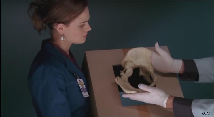 A laborban Hodgins mintát gyűjt, az új gyakornok, Fisher pedig az áldozat maradványait szedi elő az általa uzsonnás zacskóknak titulált barna bizonyítékzacskókból, miközben azt fejtegeti, hogy mind az 1263 csontdarabról rikolt a kín, az erőszak és a reménytelenség. Cam meghatározta a halál idejét (péntek este és szombat reggel között) és az utolsó vacsorát is (gyros, lehet csekkolni a görög éttermeket), jelenleg a személyazonosság érdekli. Fisher Angelára utalva megjegyzi, hogy a „dögös pipi” épp rekonstruálja az arcot, majd Cam arckifejezését látva lazán elnézést kér és módosít „másik dögös pipi”-re. Cam somolyog, Fisher jó arc.