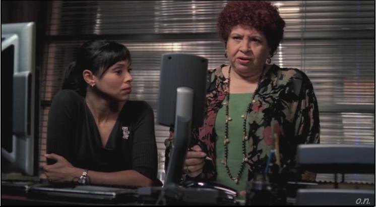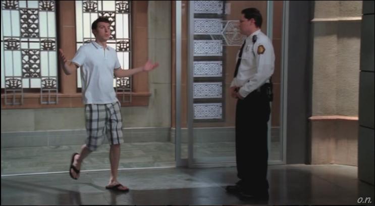 Bones a konyhában főz, Booth intézi a beszerzést, áh, klasszikus boldog családmodell. Kivéve, hogy a nő a koponyát főzi, a férfi pedig nagyítót szerez a maradványok vizsgálatához, ezáltal a gyilkos elkapásához. Az alvó néni szemüvege megfelel a célra. Angela eközben a képekkel bűvészkedik, az ismeretlen anyaguk valamilyen fénylő felület. Hodgins kéri a saját gépére is az eredményt. Eközben Bones már használatba is vette a szemüveget, de persze nem érti, miért kellene megbüntetnie Booth-t a vissza nem hozott könyvekért. Még akkor sem, amikor társa javaslatára megrázza a haját, hehe. Azt viszont már tudja, hogy az áldozatot leütötték, Booth-nak újabb beszereznivalói akadnak a lenyomatkészítéshez. Protézisragasztót és hintőport kap az utasoktól, öngyújtót pedig a stewardess-től, elkobozta, nyilván.