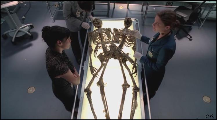 Texas és Oklahoma határán találnak csontokat ezúttal, így amíg Bones az első megállapításokat végzi a helyszínen, Booth-nak végig kell hallgatnia a határőrök kollegiális civódását is. A laborban a kancsik a szokásos eljárást követik: feltérképezik a sérüléseket, meghatározzák a kort a fogazatból. Angela az egyetlen, aki szerint pillanatok alatt meglesz az azonosítás, mivel az áldozataik összenőtt ikrek. Vincent Hermione-üzemmódba kapcsol és már mondja is a számadatokat róluk, Angela pedig elmegy, hogy rákeressen az eltűnt sziámi-ikrekre a neten. Hodgins átvizsgálta a földet, különös atkákat talált és lebomlott popcornt. Cam ebből mozira tippel, de Hodgins már ég a vágytól, hogy előadja elméletét, ám Vincent megelőzi: cirkusz. Angela máris visszatér és megerősíti: Jenny és Julie zsonglőr ikerpár voltak egy vándorcirkuszból.