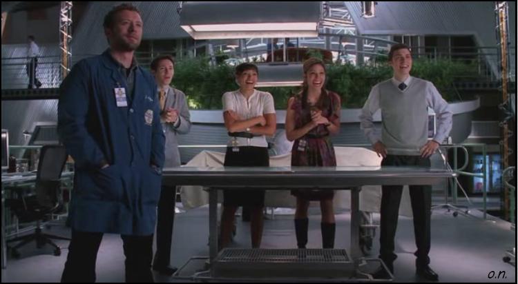 Magnum, az erőember és Madame Nina mesélnek kicsit a lányokról. Láthatóan hiányoznak nekik, bár a bohócoknak annyira nem, ugyanis kérdezés nélkül vették el a kellékeiket az új számukhoz. Az is kiderül továbbá, hogy Julie-nak volt egy barátja, ámbár külsős volt az illető, az pedig a cirkuszban nem járja. Hodgins azonosított is szantálillatú (a Word ezt javítaná „szandálillatú”-ra, haha) hajzselét a lány körmei alatt, Booth apja meg ugye borbély, azért fejből tudja márkát, és azt is, hogy a doki haján is ilyet láttak. Cam egy jól időzített (értsd: amikor Booth nem hallja) kérdéssel eléri, hogy webkamerán követhessék az előadást, nyilván a nyomozás elősegítésére, aztán igyekeznek Hodginsszal nem feltűnően örülni. Amíg Booth orosz jelmezt és egy gyors járművet keres, Brennan nekiáll rendbe rakni a földre dobált cuccait, hiszen a férfi a gravitációra fogta a dolgot. De szép is a közös élet.