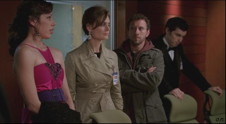 Az FBI-nál kezdünk, egy szövetségi bíró behívatta Brennant, Hodginst, továbbá Thomas Vegát is, ebből rögtön tudható, hogy Sírásós rész következik. Heather Taffet ügyésznő vette át az ügyet, miután az elődjét megölték egy autóbalesetben. Ezt persze Hodgins tudja, mint ahogy azzal is tisztában van, hogy nem halad a nyomozás. Egy bizonyíték mégis eltűnt, és mivel nekik hármuknak van közük az FBI-hoz, Taffet felszólítja őket, hogy adják vissza. Brennan majdhogynem nyíltan kineveti a feltételezésért, és inkább arra koncentrál, hogy időben érjen a rendezvényre, amire hivatalos. Booth-t is hívja telefonon, aki megnyugtatásul közli, hogy már elindult, ki nem hagyná, amikor társát szupertudóssá koronázzák. Ehhez képest még otthon igazgatja a Cocky csatot és a legjobb szmokingot, amit csak kölcsönözni lehet, de semmi vész, majd a Parkertől kapott óra GPS-e odaviszi a helyszínre. Ekkor kopognak, Booth megy ajtót nyitni, Bones meg csodálkozik, hogyan lehetséges ez vezetés közben.