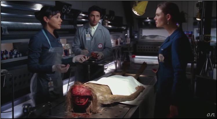 Ashley szülei úgy hitték, ideális családi életet élnek. Anyuka málnalekvárt főzött a lányával az eltűnése napján, Ashley az iskolai bálba készült aznap, de sosem ért oda. Így aztán az Anya érthető módon elég rosszul reagál, amikor megtudja, hogy a lánya kb. 12 hetes terhes volt a halálakor, közvetlen ezután pedig Bones kérdez rá a sok sérülésére, gyermekbántalmazással gyanúsító hangnemben. Szerencsére az Apa higgadtabb: Ashley sportoló volt, méghozzá röplabdázó. Mindezt igazolja a kiropraktőre is, de ő sem tudott a terhességről. Bones nem mulasztja el megjegyezni, hogy a pasi nem igazi orvosdoktor, mire amaz visszaszól, hogy a nő sem az. Találat. Brennan ezután még a maradványokhoz sem fér hozzá, mert Cam meg akarja próbálni rehidratálni, hogy rendes boncolást végezhessen. Hiába játssza ki Brennan a „kijövök a börtönből” kártyáját, Cam üti a „visszautasítással”, Arastoo meg csak pislog, hogy kik közé került. Talán mégsem ő a legfurcsább itt a vallásosságával.