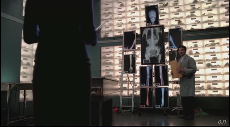 Cam fotometriás vizsgálatot végez, ami egyrészt lenyűgözi Arastoot, másrészt megtalálja a halál okát: apró zúzódás a bolygóideg tetején, és még Brennan is elismeri, hogy ezt csak a csontokból sosem tudták volna meg. Mivel igen csekély annak az esélye, hogy a bolygóideget véletlenül ilyen erővel megütik, olyasvalaki tehette, aki tudta, mit csinál. Hodgins a korábban talált piros fonalakból megmondja a az autója típusát, Arastoo pedig ismét félrevonul imádkozni. Cam szerint olyan ez, mint a kávé- vagy a cigiszünet, igaz közülük senki sem dohányzik, csak nagyon ritkán, kivételes stresszhelyzetben. Booth csekkolja a kiropraktőr autóját, egyezik, de túl sok ilyen kocsi van még a városban, nem kapnak végzést. Fedett akcióra lesz tehát szükség, és mivel Bonesék már jártak a pasinál, Angela és Sweets mennek.
