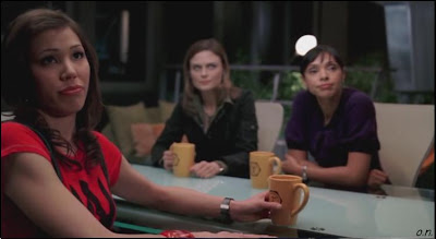 Cam érdeklődik a friss eredményekről a laborban, és meg is egyeznek Brennannel menten, milyen erős késztetést éreznek egy kihallgatáson a gyanúsított megverésére. Clark szerint az, hogy ezzel együtt mindketten az igazságszolgáltatásban dolgoznak, ironikus. Cam elmondja, hogy nem kereste fel újra Michelle-t. Hodgins fehér műanyagot azonosított sérült csontokba ágyazódva, egy eldobható evőeszköz lehetett. Összerakják, mi történt: valaki megpróbálta a szúrt sebet kitágítani egy műanyag késsel, hogy jobban hozzáférjen, és elállíthassa a vérzést. A cipőfűzővel valószínűleg a sérült artériát akarta elszorítani, márpedig ilyet csak orvosi háttérrel rendelkező ember tehetett.