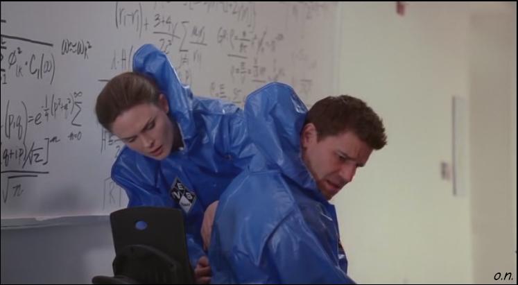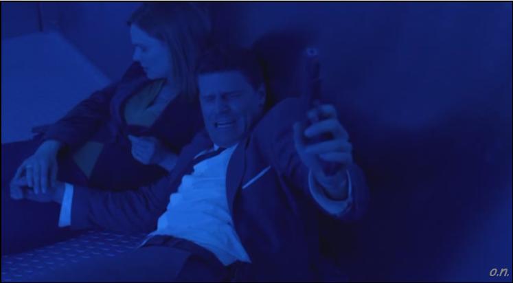 Meg is találják, és bele is sétálnak, mert óvatlanok, így amíg Bones az emberi test természetes rezgésfrekvenciáját fejti ki Booth-nak, valaki rájuk csapja az ajtót és beindítja a gépet, így aztán hőseink kénytelenek fejhangon visítani, hogy a rezgést kompenzálva ne főjön meg az agyuk. (Nem tudom, mennyit röhöghettek, amíg felvették a jelenetet, én speciel sírtam, mindegy.) Szerencsére Booth-nál van pisztoly, az ajtón meg egy kis ablak, így azt kilőve életben maradnak. Landis húzza ki őket, és szól, hogy talán ne most vitassák meg, hogy a visítás vagy a lövések mentették meg őket, mert az erős hanghatások miatt jelenleg ordítanak, ő meg nem akar süket is lenni, ugye.
