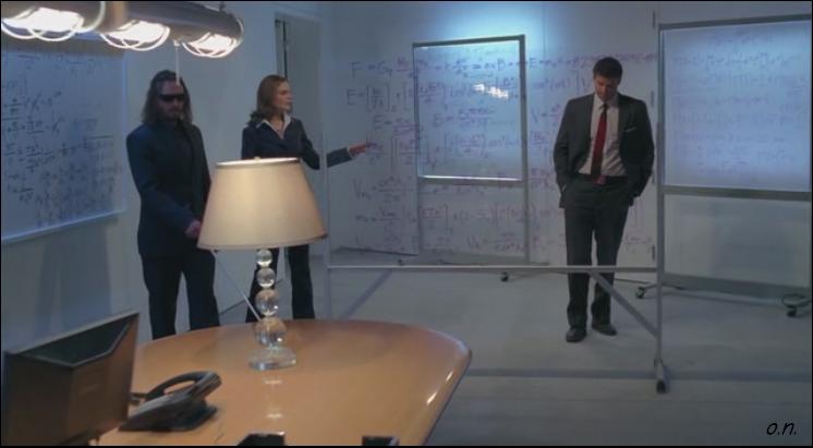 Diane irodájában táblák vannak, tele bonyolult egyenletekkel, ugyanis a nő elméleti fizikus volt. A Hadron Ütköztető csapat tagjaként sok halálos fenyegetést kapott, mert akadt, aki hitt az esélyben, hogy a kísérlet elpusztítja majd a világegyetemet. Landis elmondja nyomozóinknak, hogy Földrengéskutató a szerkesztői szék várományosa, és bizony Diane-nel ők kavartak ám. Booth rögtön rámenne a féltékenység-vonalra, Bones meg persze egyáltalán nem furcsállja a dolgot, megegyeztek, oszt’ jóvan. Sweets beszél Földrengéskutatóval, Booth meg örül neki, hogy társát nem vették fel a Collarba, hátborzongató népek azok. Tény, hogy Bonesnak is van hátborzongató üzemmódja, de azért biztosan érdekes irányba formálta volna a személyiségét a Collar. Sweets jelenleg tudós módban működik, így Booth az egyetlen, akit érdekel, kivel feküdt még le Földrengéskutató. Kozmogéncsajjal, ő pedig Tajtékhalásszal, hát fiatalok, na. Továbbá tudósok, így Földrengéskutató el is sorolja ügynökünknek, kik lehetnek gyanúsítottak az ő érvelése alapján. Gyakorlatilag mindenki.