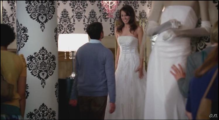 Bones és Booth ellátogat tehát az esküvői ruhaszalonba, hogy ott is bizonygathassák, ők nem egy pár. „Magukat nyilvánvalóan egymásnak teremtették” – jelenti ki a hely tulajdonosnője, és nyilván pont ugyanezt mondja minden hozzá betérő párnak, pont ugyanilyen műmosoly kíséretében, de ezesetben kivételesen igaza van, bár ezt ő maga nem is sejti. Azt viszont tudja, hogy Meriel ugyan nem volt senkinek a nővére, de gonosznak gonosz volt, a legjobb eladójával, Anyaval vitázott össze, aki pofonvágta, mire a nő perrel fenyegetőzött. Így aztán kénytelen volt Anyat elbocsájtani. Amíg az elérhetőségeit keresi, ismerős frekvenciájú visítás hallatszik a háttérből: Daisy menyasszonyi ruhát próbál és egy olyan pasi nyakába ugrik, aki biztosan nem Sweets. Hoppácsak. (A ruha amúgy szép, és jól is áll neki.)